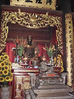 In den zahlreichen Kriegen wurde die Anlage leider sehr zerstört. Zum Glück sind die meisten Teile inzwischen wieder restauriert worden, sodass man wieder durch die große Tempelanlage mit ihren fünf Höfen und zahlreichen Pavillions und Zeremonienhallen schlendern kann. In einem der Höfe stehen die Kandidatenstelen auf steinernen Schildkröten (ein Zeichen für Glück und Langlebigkeit), auf denen alle Namen der erfolgreichen Abschlusskandidaten stehen. Jede Stele steht für einen Prüfungsjahrgang. Und in der letzten „Halle des großen Erfolges“ steht ein Altar zu Ehren des Konfuzius und seiner vier Schüler.