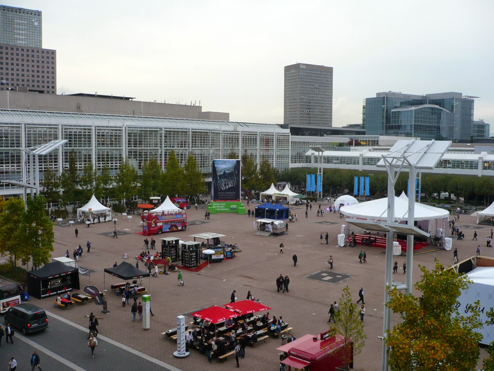 Ankommen, in Halle 3.1 rennen. Erst mal raus auf die Terrasse und ein Foto machen.